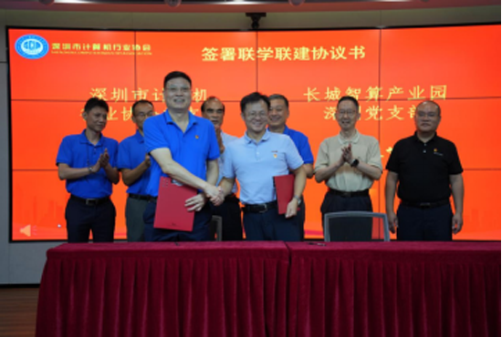 深圳市计算机行业协会党支部与长城智算产业园深圳党支部共同签署了《弘扬抗战精神、筑牢网信安全长城联学联建协议书》。协议明确建立“理论联学、资源联享、产业联促、安全联护、活动联办”五项机制,推动双方在组织共建、队伍共育、活动共办、难题共解等方面深化合作。下一步,双方将共同制定年度共建计划,定期开展联合主题党日、专题党课、技术研讨和网络安全攻坚等活动,协同打造“红色引擎+网信安全”标准化党建品牌,不断提升党支部建设规范化水平,以党建引领业务深度融合,切实增强基层党组织的凝聚力和战斗力。