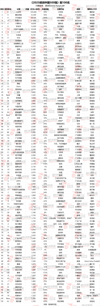 《2025胡润中国500强》